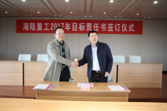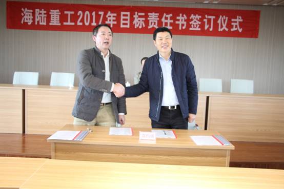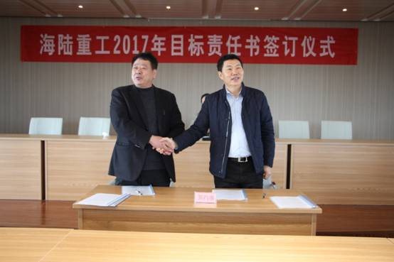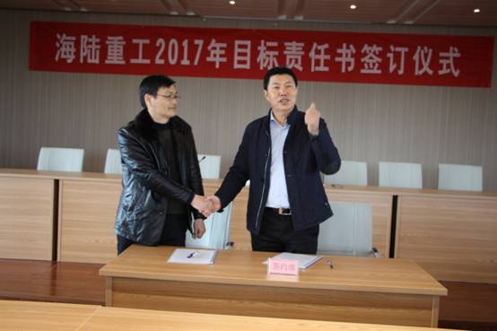 2月6日,新春伊始,為實現公司的持續快速發展,順利完成年度經營計劃,貫徹落實公司績效管理政策, 2017《績效目標責任書》的簽訂儀式。責任書明確了公司事業部和責任主體的權利與義務,并對各事業部經營與管理任務指標進一步量化了考核標準,在公司原有考核獎勵機制、績效考評等基礎上進行了優化與改進。會上董事長徐元生做了重要講話,徐總指出一年之際在于春,2017年各部門目標責任書的簽訂,對于公司的未來發展,意義非凡。目標責任書的簽訂,只是一個起點,這個起點是理性的,務實的,也是富有激情的。最后,徐總希望簽約的各位領導干部壯志在我心,揚鞭在腳下,快速地行動起來!用樂觀自信的態度,拿出全力以赴的精神,充分展現自己的才能,注重上下團結協作,發揮自己聰明才智,創造出海陸重工2017年新的輝煌。